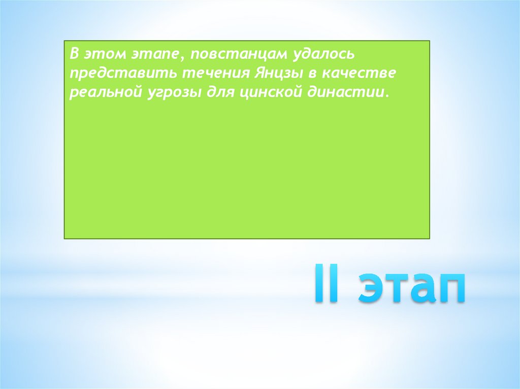 В этом этапе, повстанцам удалосьпредставить течения Янцзы в качестве