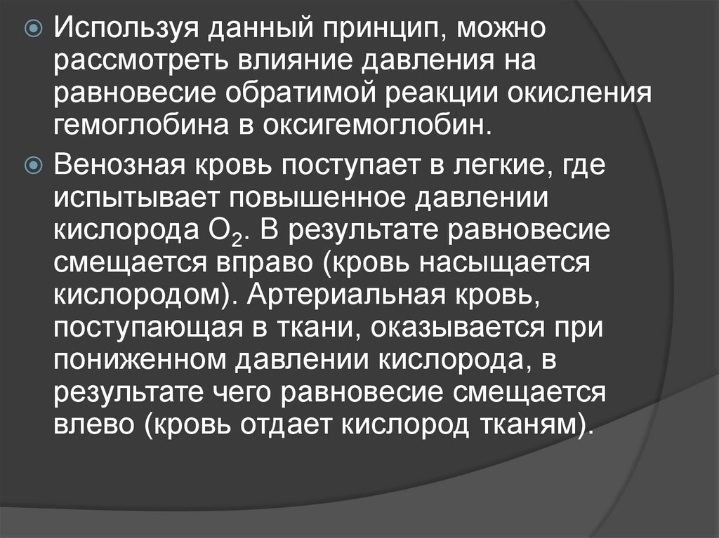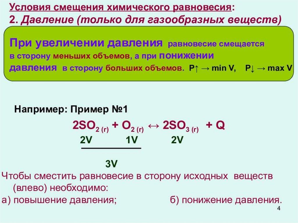 Используя данный принцип, можнорассмотреть влияние давления на