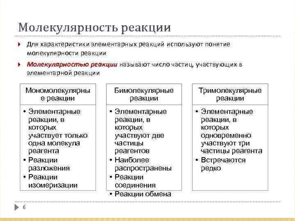Молекулярность реакцииМолекулярность реакции определяется числом