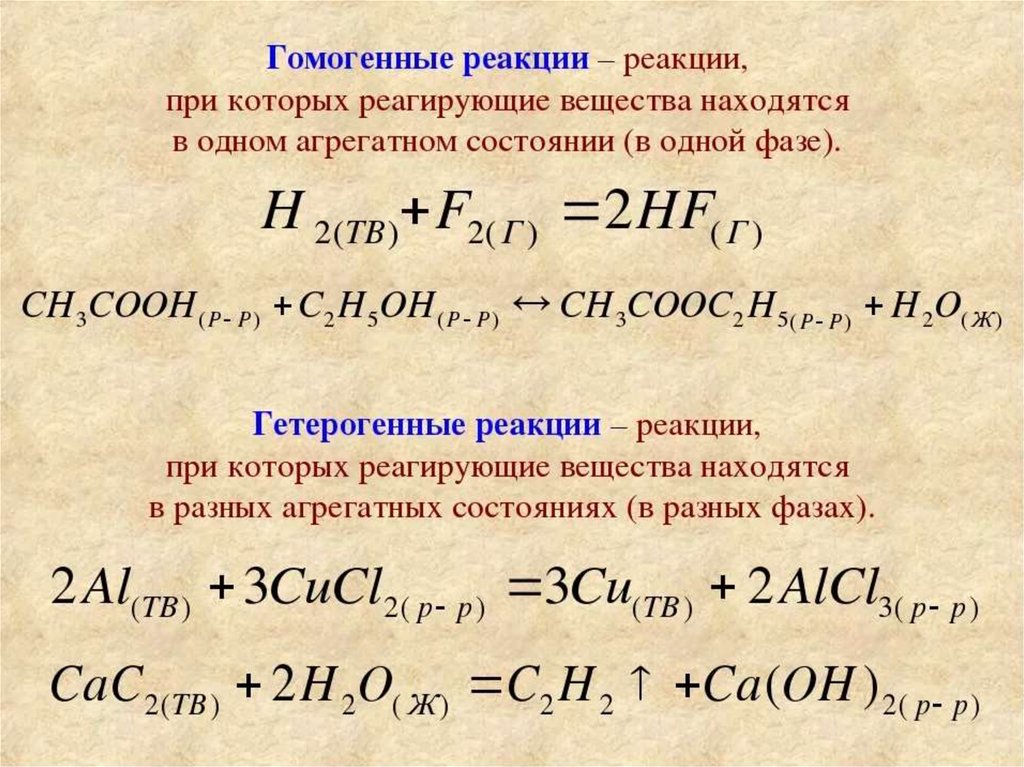 гомогенных и гетерогенных реакций?