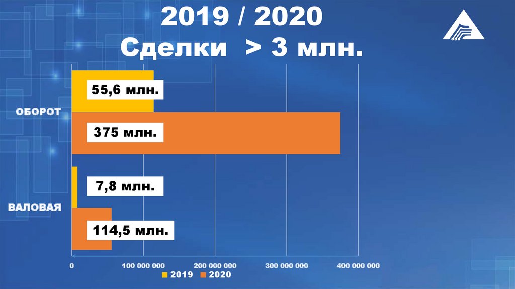 •ТО / ВП по потерянным : 13млн. / 2,5 млн.