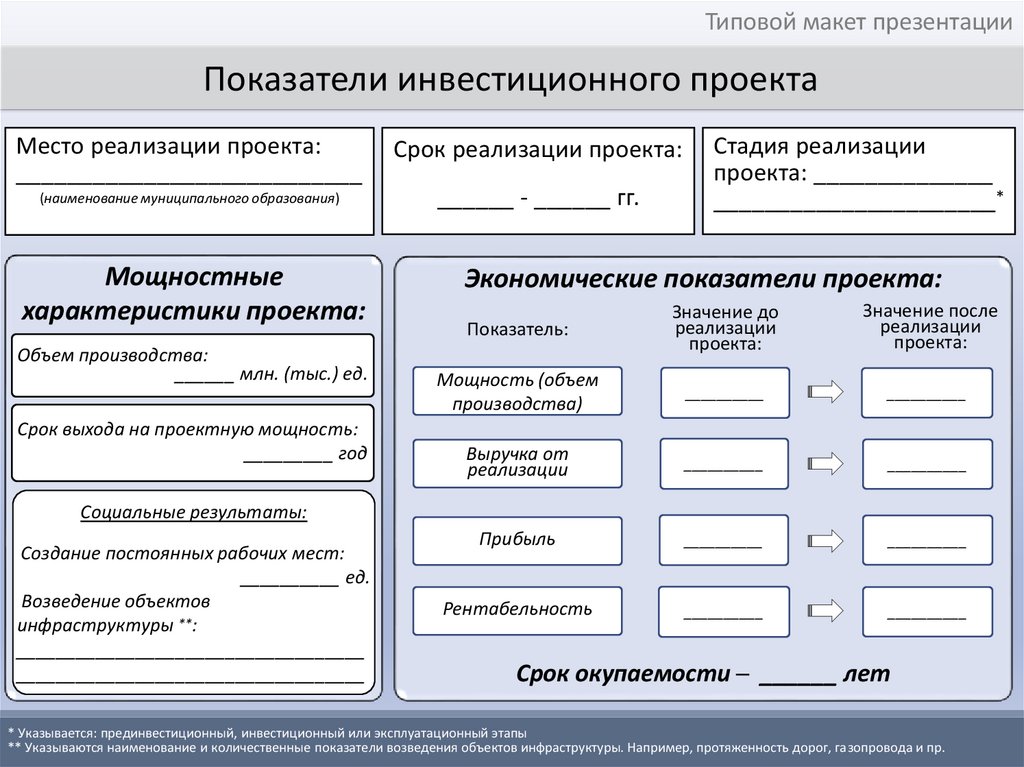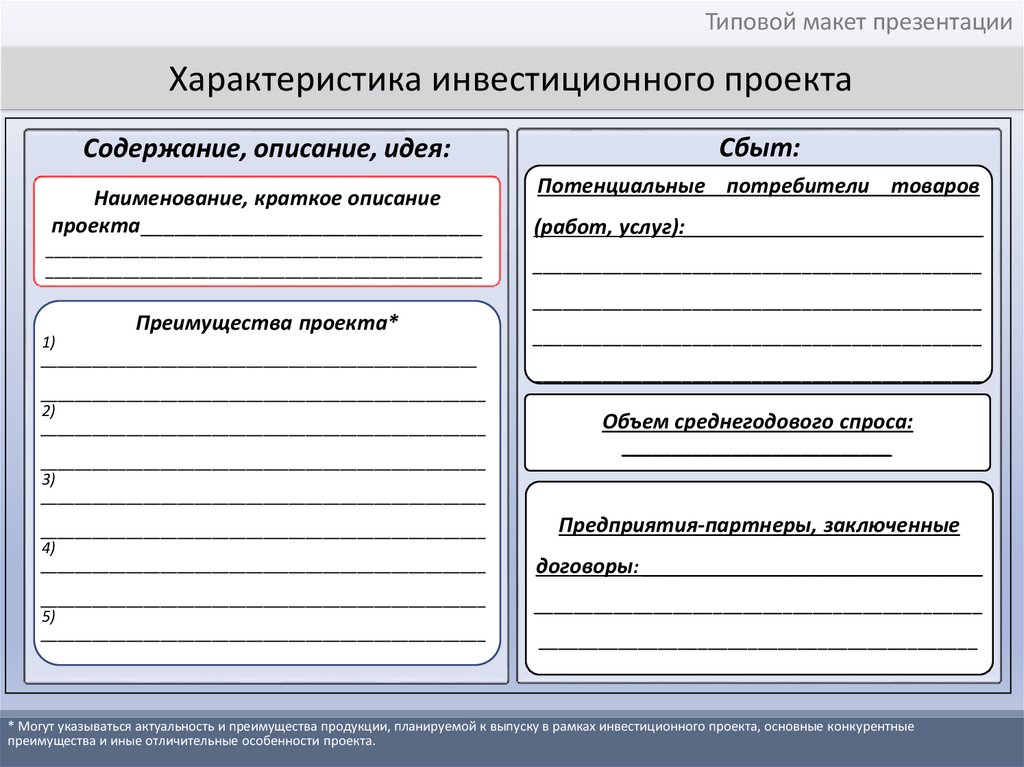Типовой макет презентации инвестиционного проекта