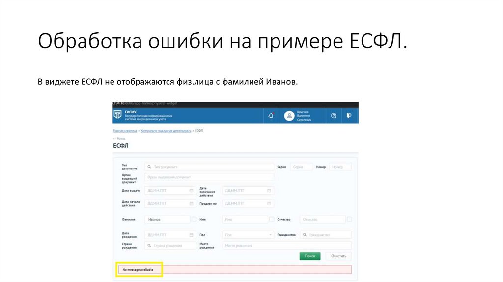 Обработка ошибки на примере ЕСФЛ.В виджете ЕСФЛ не отображаются физ.лица с фамилией Иванов.