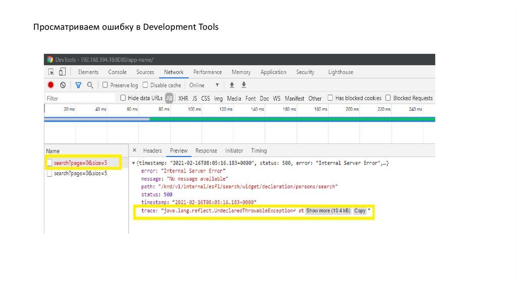 Просматриваем ошибку в Development Tools5.