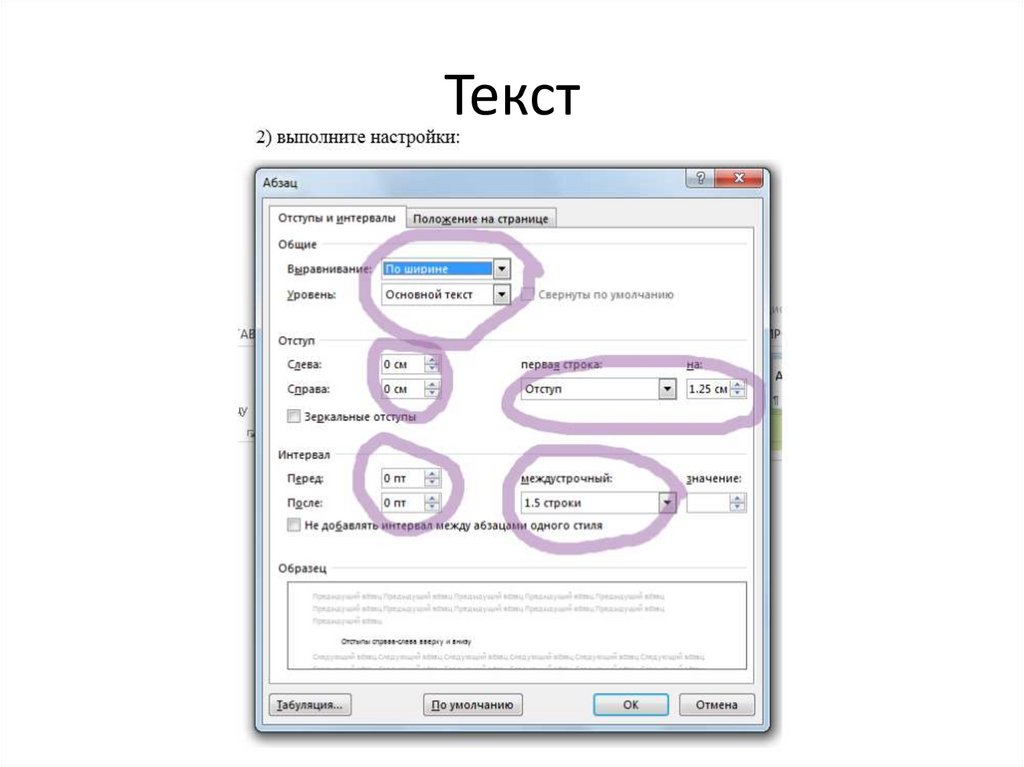Абзацный отступ 1,25