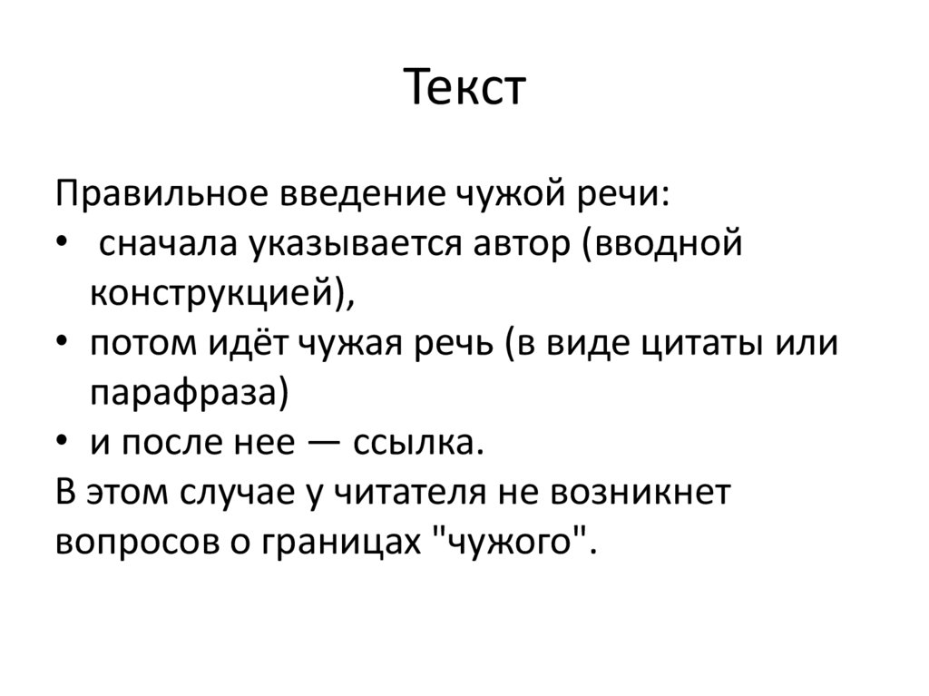 ТекстПравильное введение чужой речи: