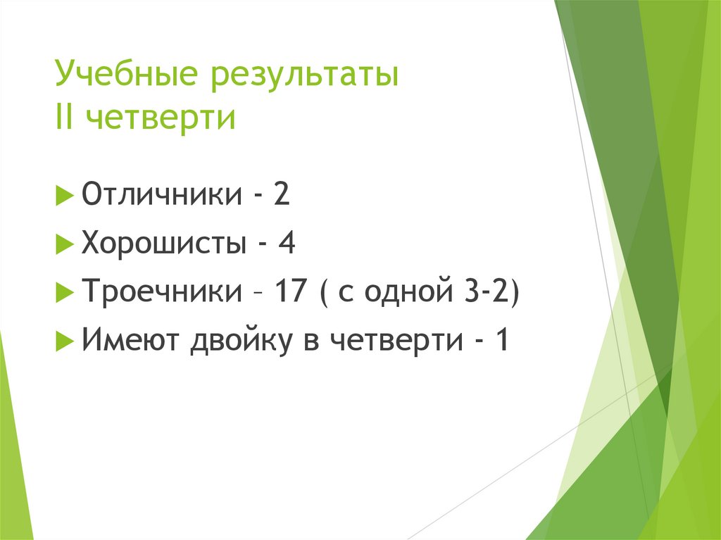Учебные результатыII четверти