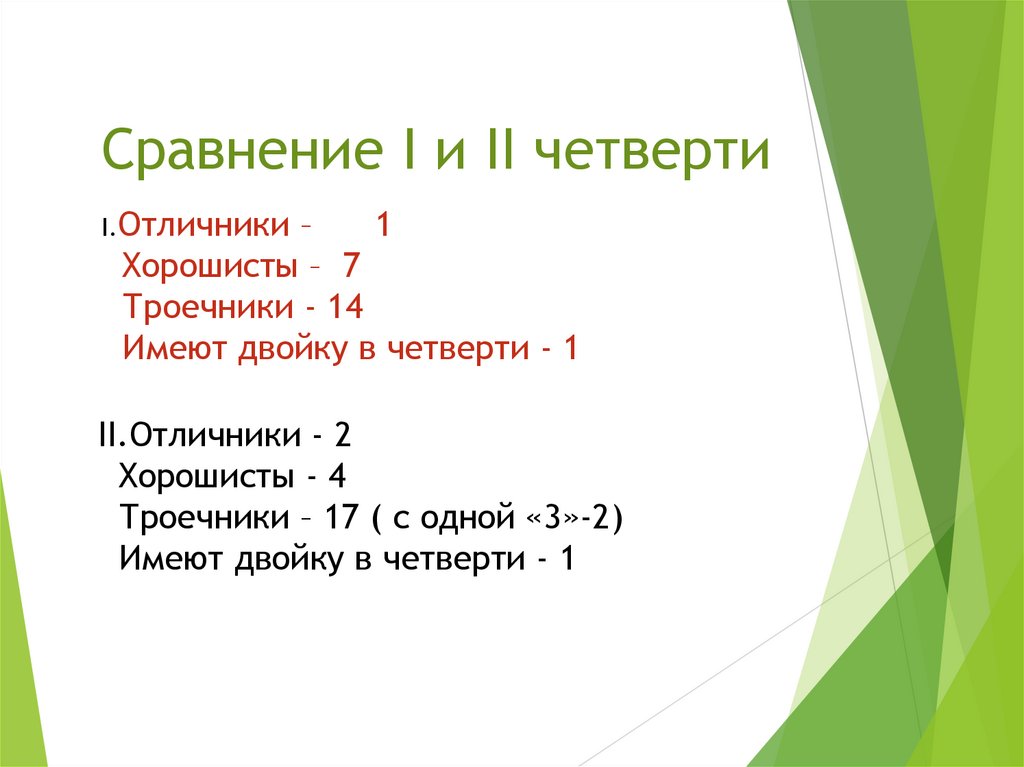 Сравнение I и II четвертиI.Отличники