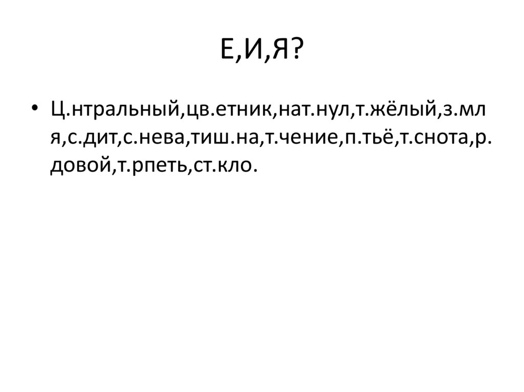 Е,И,Я?• Ц.нтральный,цв.етник,нат.нул,т.жёлый,з.мл