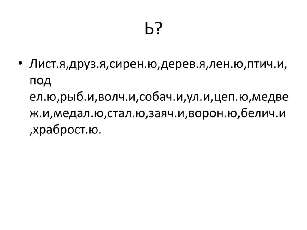 Ь?• Лист.я,друз.я,сирен.ю,дерев.я,лен.ю,птич.и,