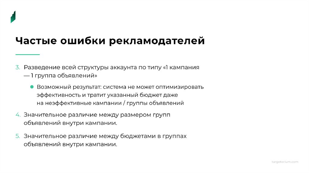 Структурирование аккаунта и рекламных кампаний