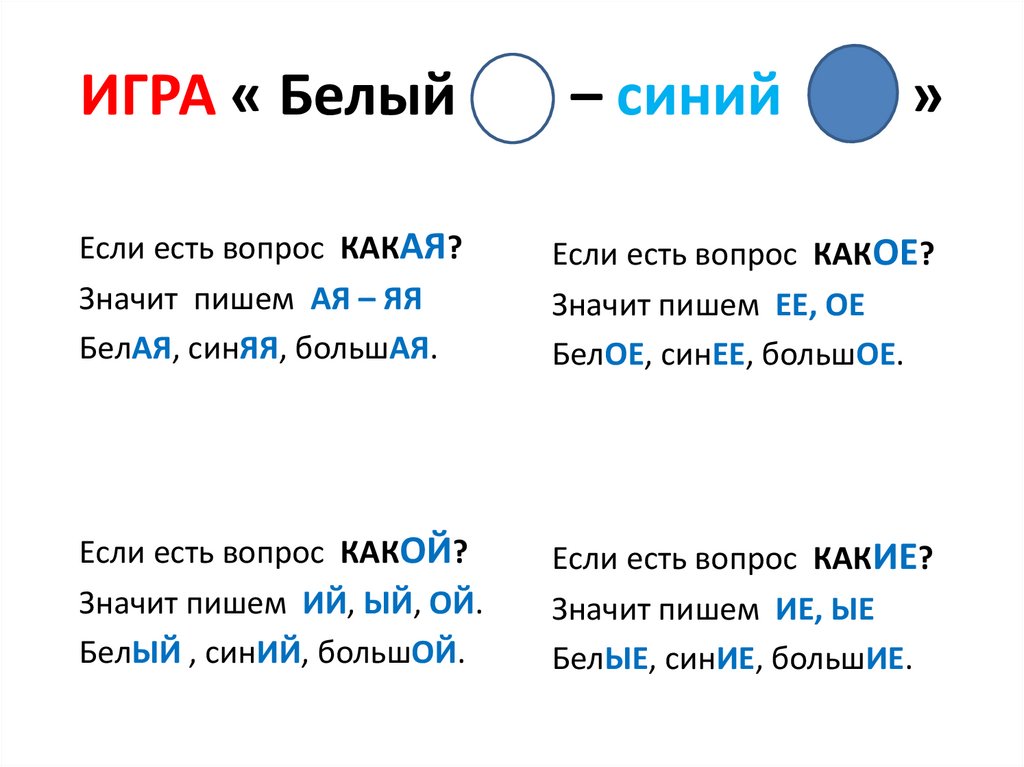 ИГРА « Белый– синий
