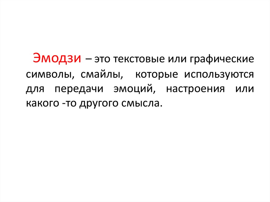 Эмодзи – это текстовые или графическиесимволы, смайлы, которые используются