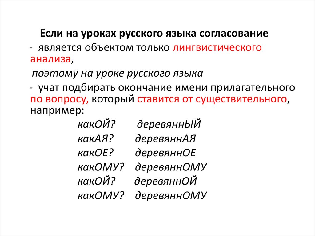 Если на уроках русского языка согласование- является объектом только лингвистического