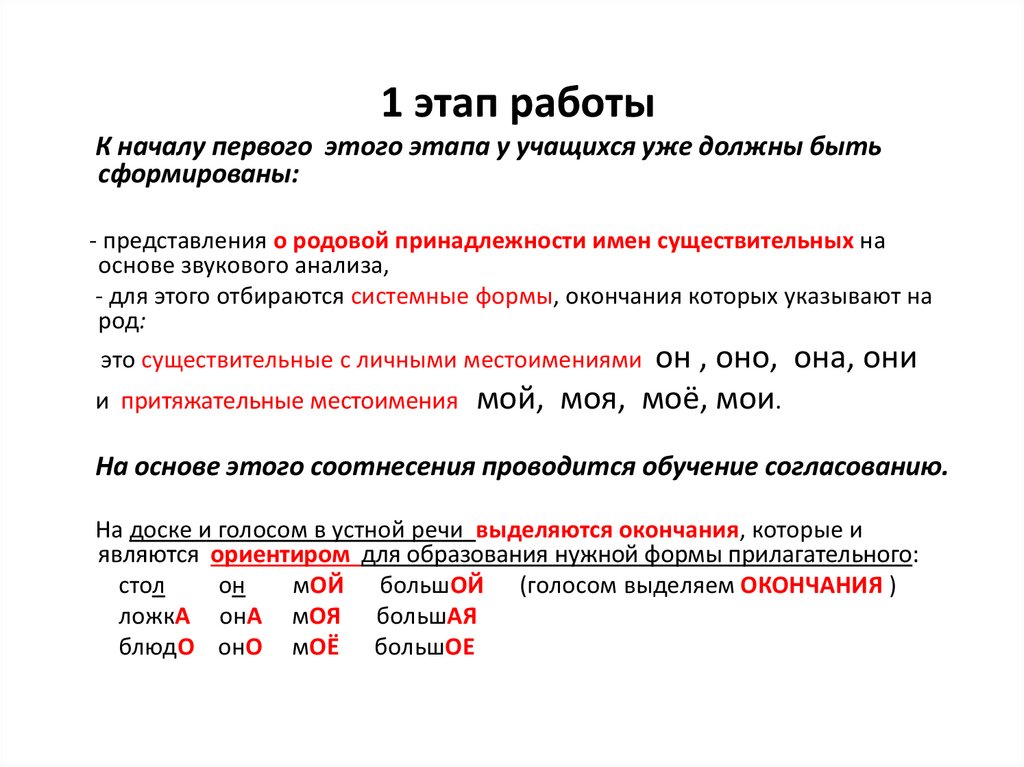 Важно отрабатывать согласование данных частей речив роде и числе через