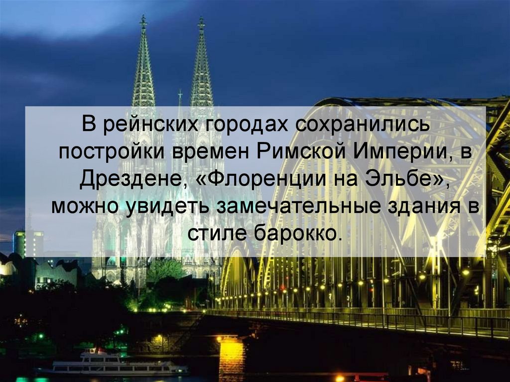 В рейнских городах сохранилисьпостройки времен Римской Империи, в