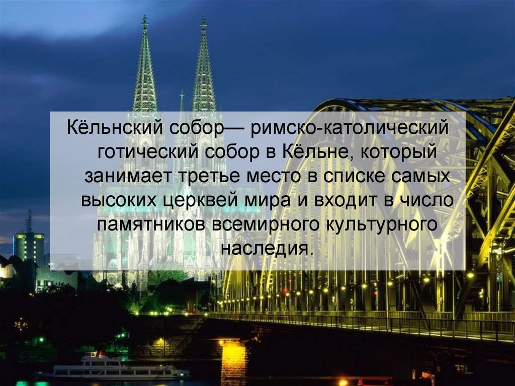 Кёльнский собор— римско-католическийготический собор в Кёльне, который