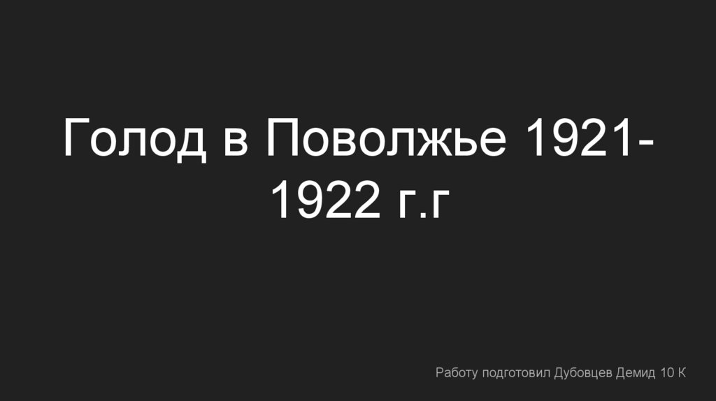 Голод в Поволжье 19211922 г.гРаботу подготовил Дубовцев Демид 10 К