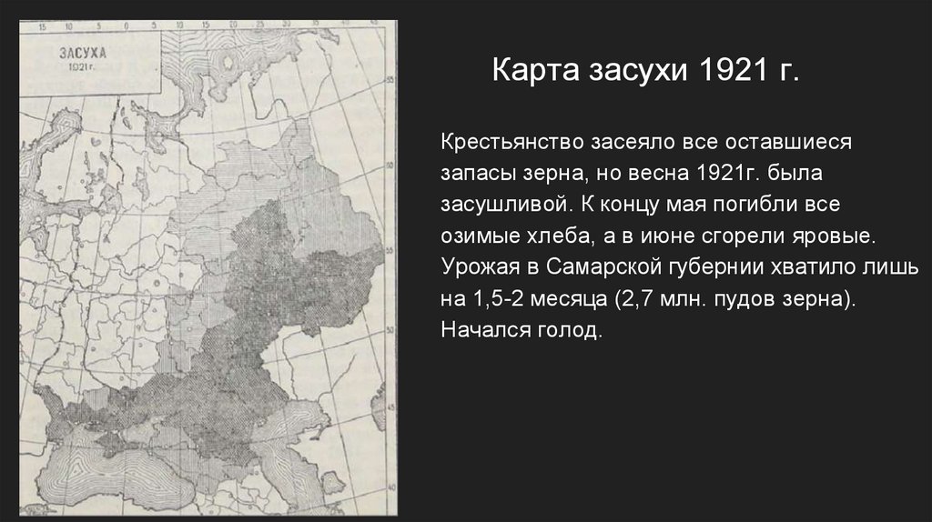 Карта засухи 1921 г.Крестьянство засеяло все оставшиеся