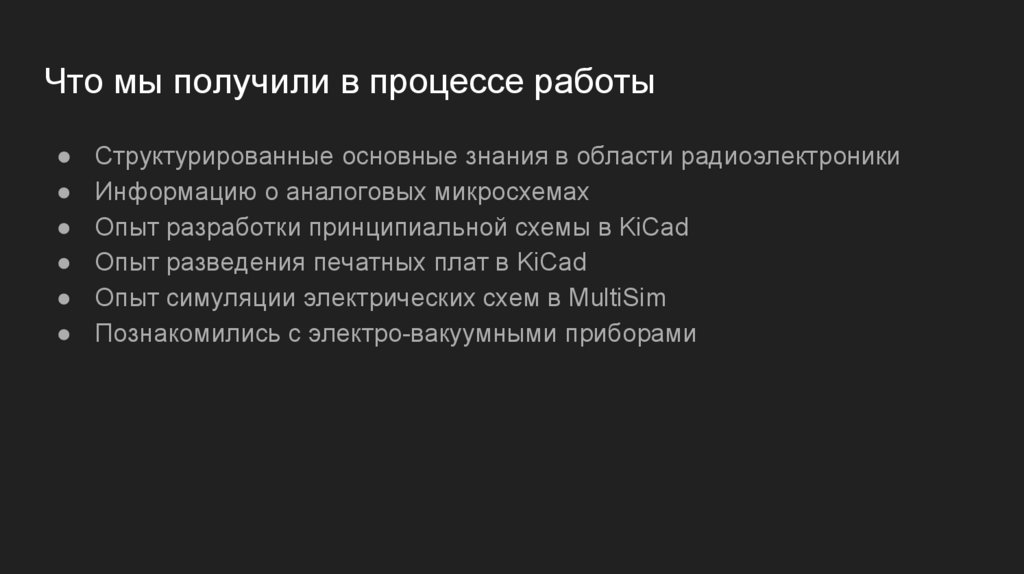 Что мы получили в процессе работыСтруктурированные основные знания в области радиоэлектроники