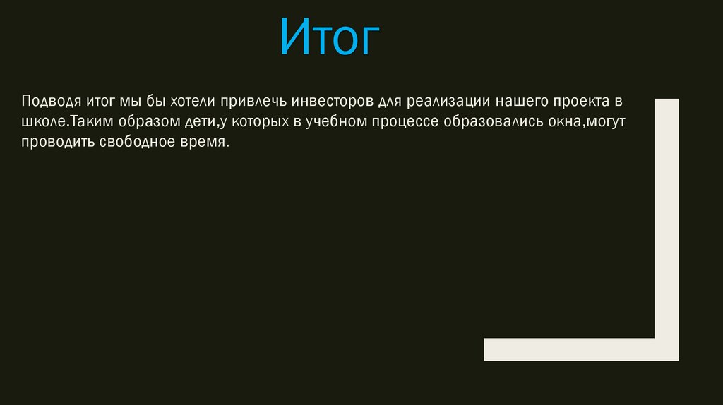 ИтогПодводя итог мы бы хотели привлечь инвесторов для реализации нашего проекта в