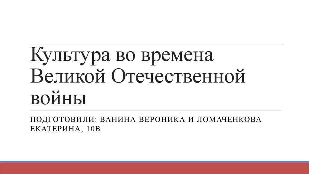 Культура во временаВеликой Отечественной