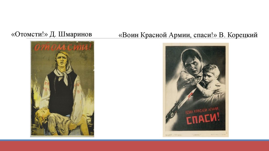 «Отомсти!» Д. Шмаринов«Воин Красной Армии, спаси!» В. Корецкий