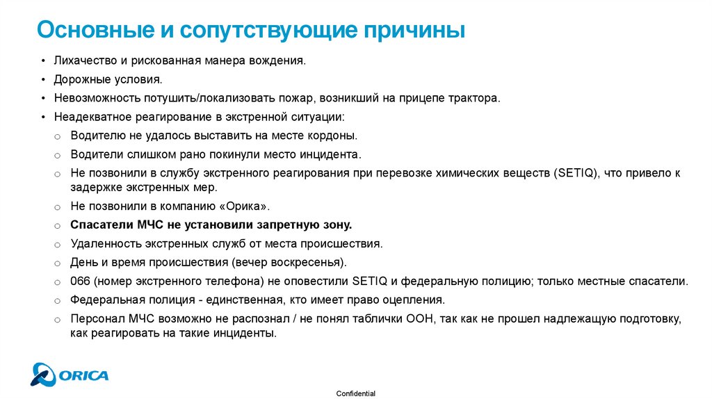 o Не позвонили в службу экстренного реагирования при перевозке химических веществ (SETIQ), что привело к