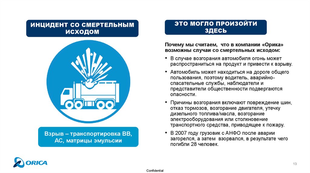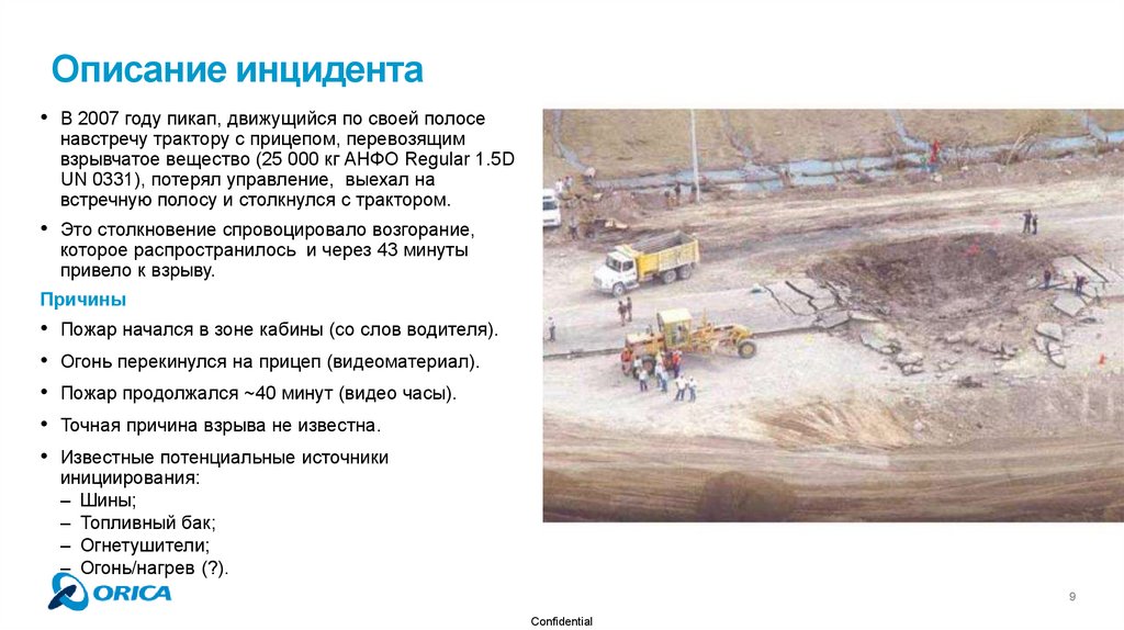 • В 2007 году грузовик с AНФО после аварии