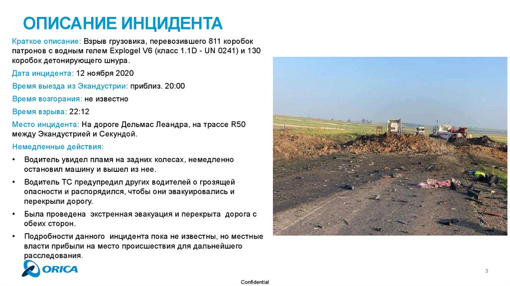 ОПИСАНИЕ ИНЦИДЕНТАКраткое описание: Взрыв грузовика, перевозившего 811 коробок