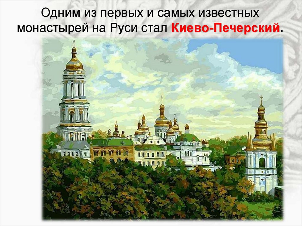 Одним из первых и самых известныхмонастырей на Руси стал Киево-Печерский.