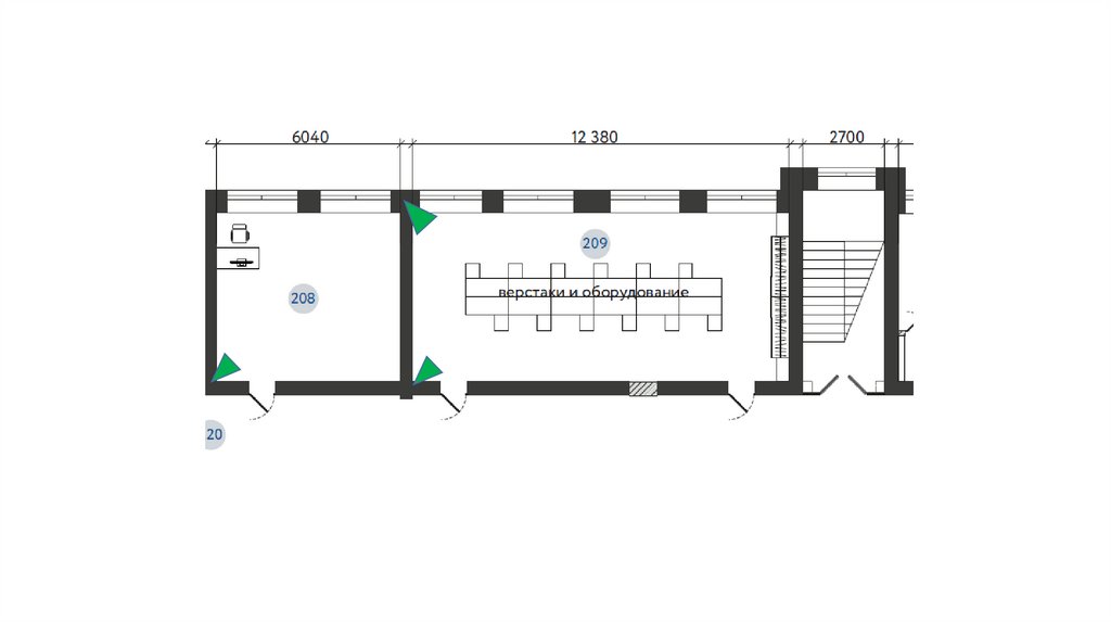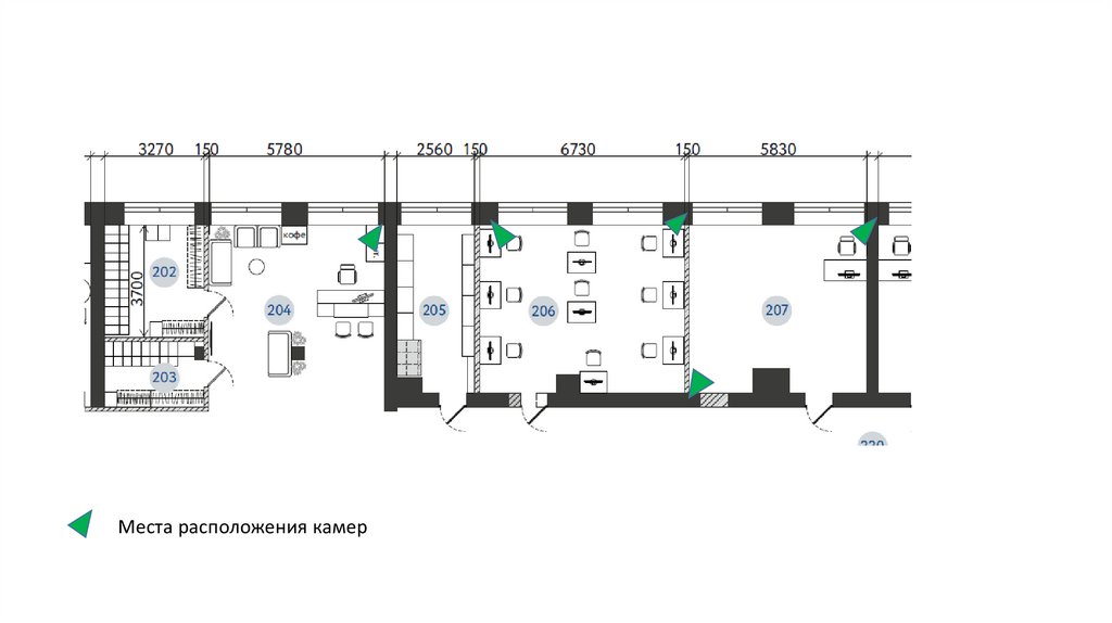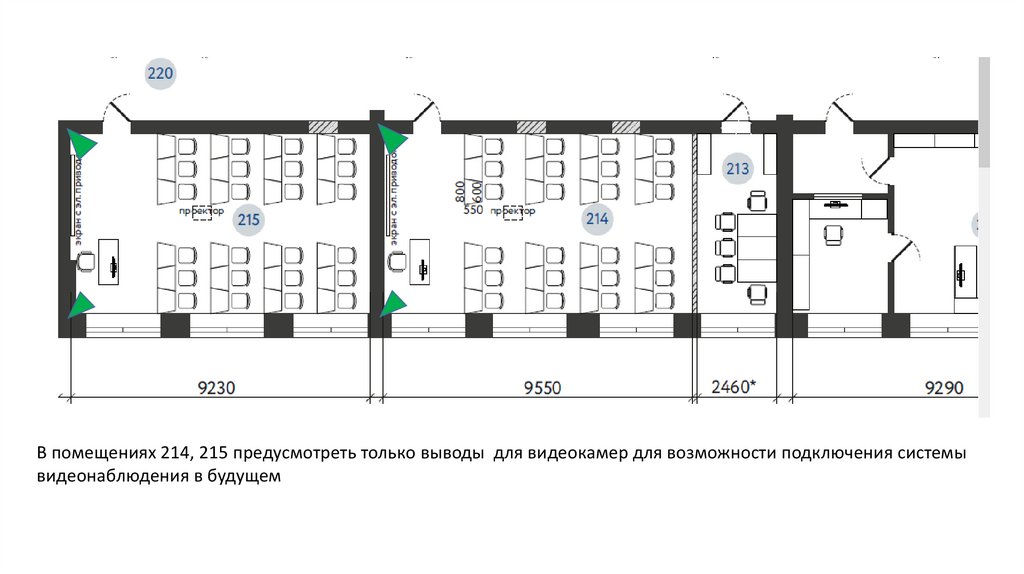 В помещениях 214, 215 предусмотреть только выводы для видеокамер для возможности подключения системы