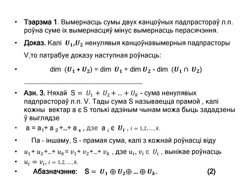 • 1. Ō - прастора. Разгледзім падмноства адвольнай лінейнай