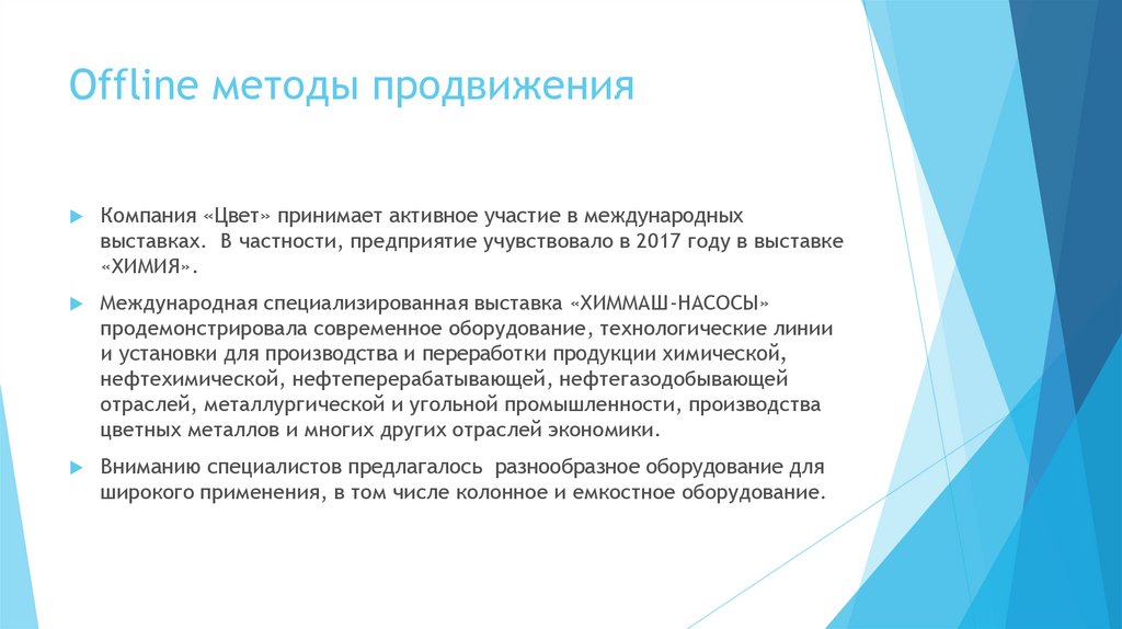 Offline методы продвиженияКомпания «Цвет» принимает активное участие в международных