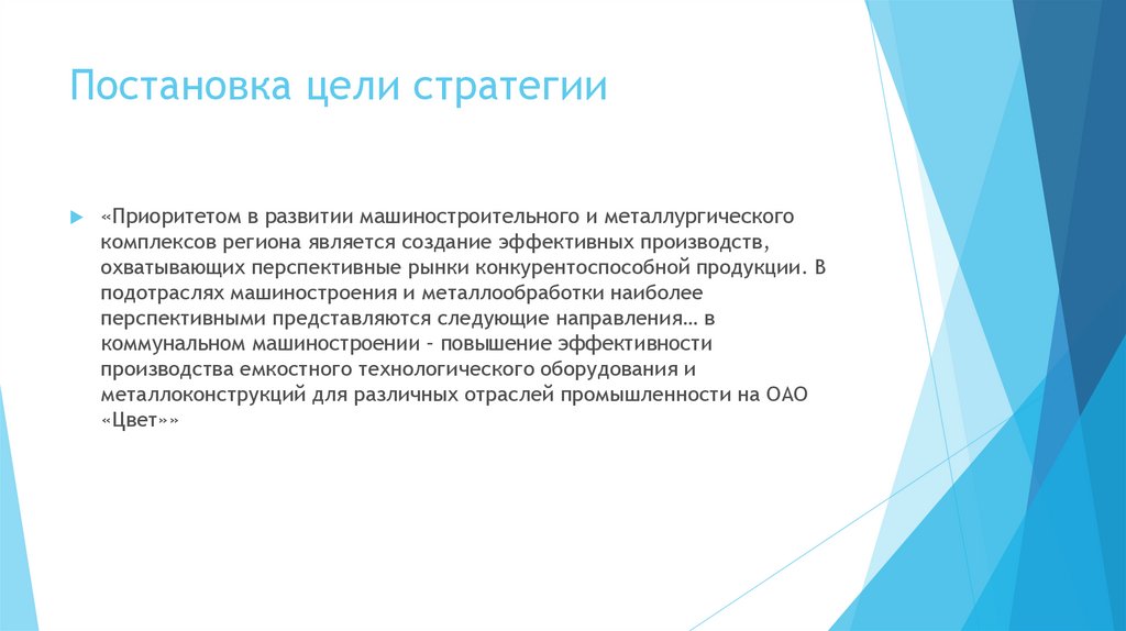 Постановка цели стратегии«Приоритетом в развитии машиностроительного и металлургического