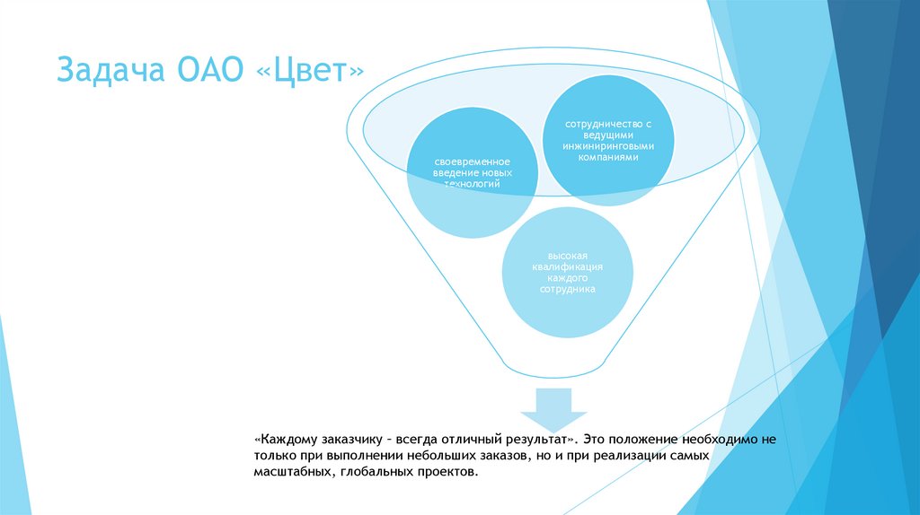 «Каждому заказчику – всегда отличный результат». Это положение необходимо не