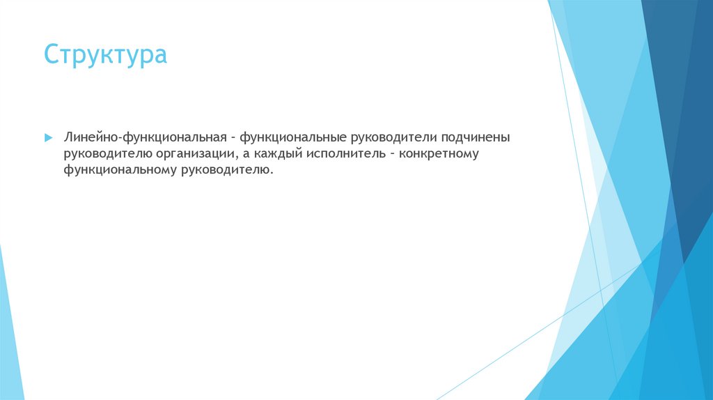 СтруктураЛинейно-функциональная – функциональные руководители подчинены
