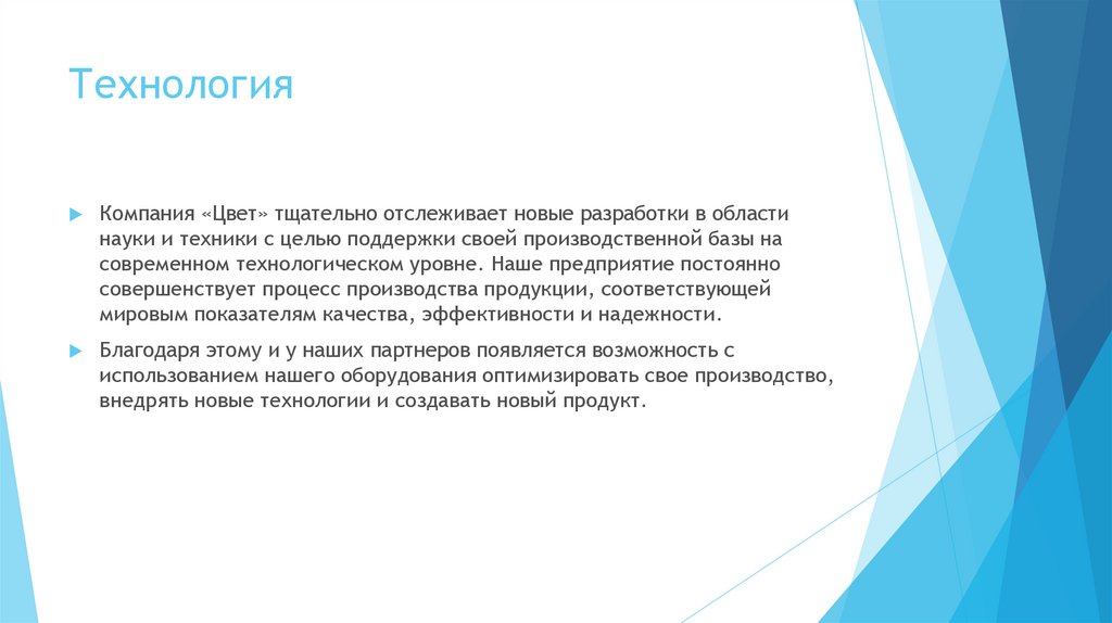 ТехнологияКомпания «Цвет» тщательно отслеживает новые разработки в области