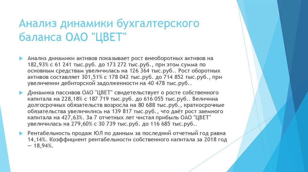 Анализ динамики бухгалтерскогобаланса ОАО "ЦВЕТ"