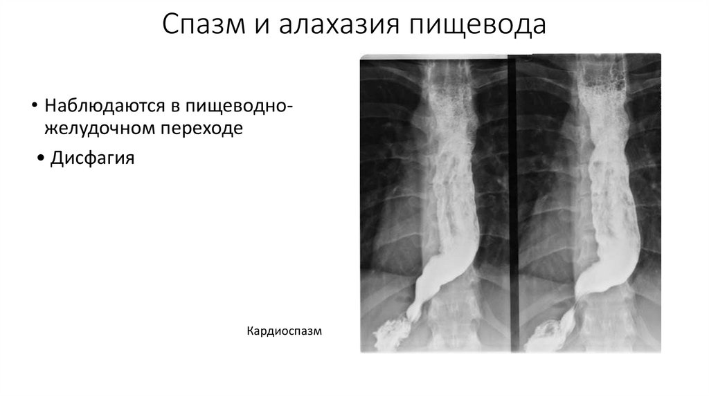 Спазм и алахазия пищевода• Наблюдаются в пищеводножелудочном переходе