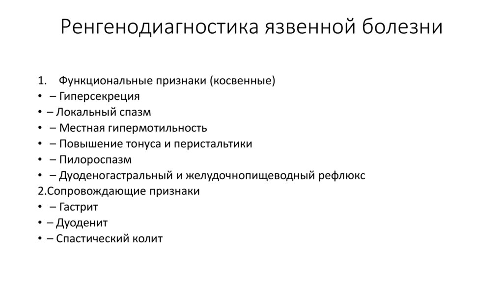 Ренгенодиагностика язвенной болезни1. Функциональные признаки (косвенные)