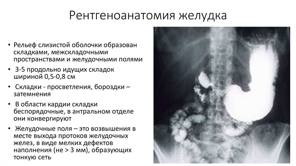 Рентгеноанатомия желудка• Рельеф слизистой оболочки образован