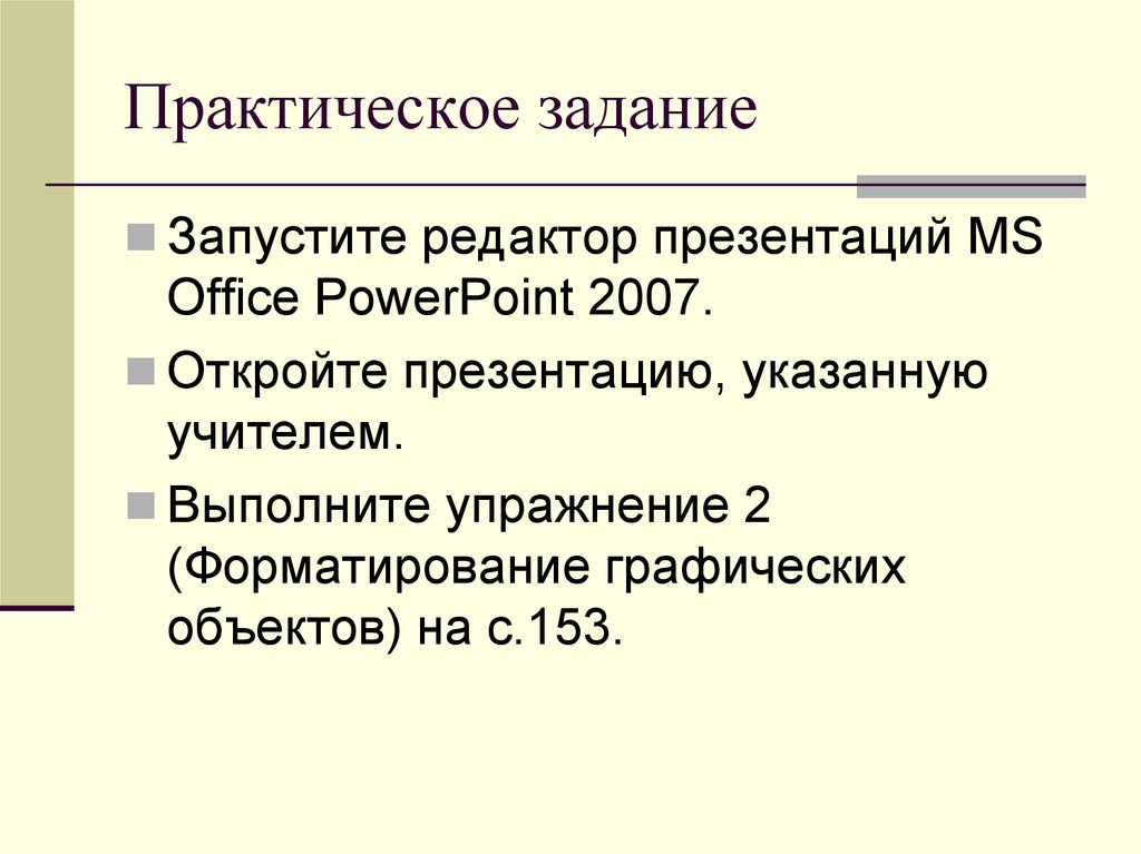 Практическое заданиеЗапустите редактор презентаций MS