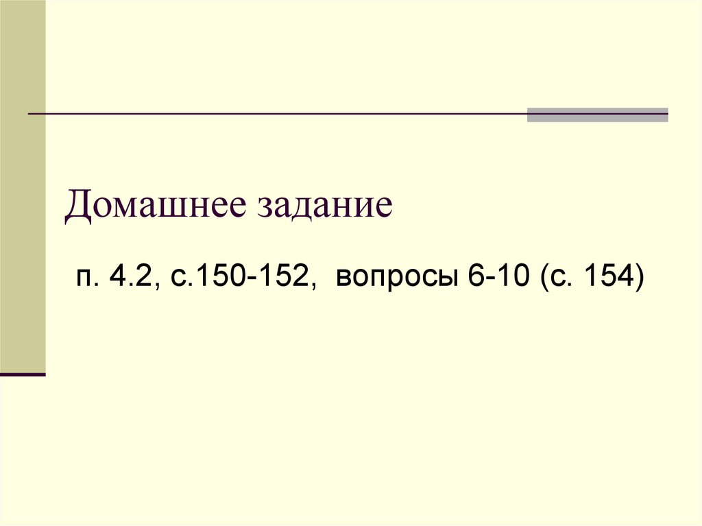 Домашнее заданиеп. 4.2, с.150-152, вопросы 6-10 (с. 154)