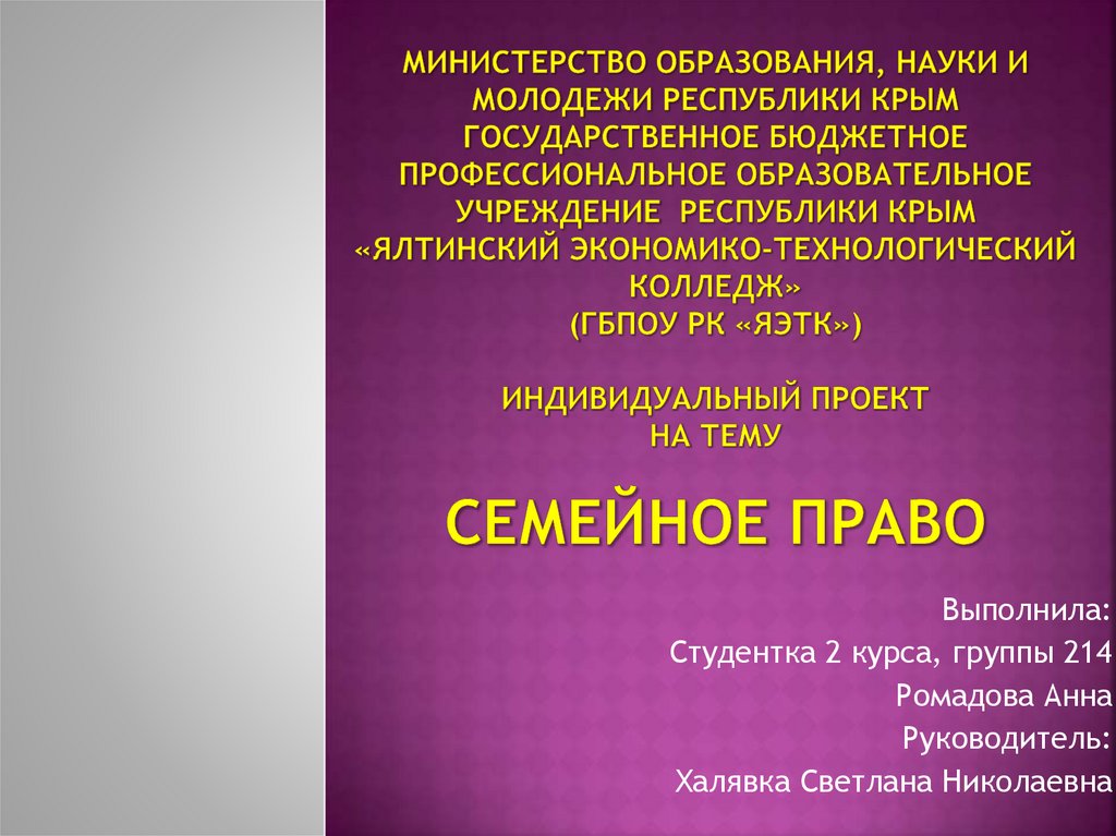 семейного права;