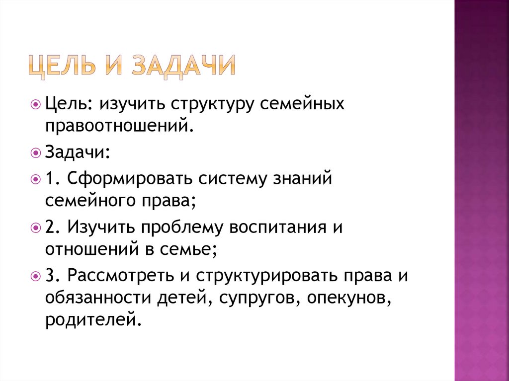 Цель:изучить структуру семейных