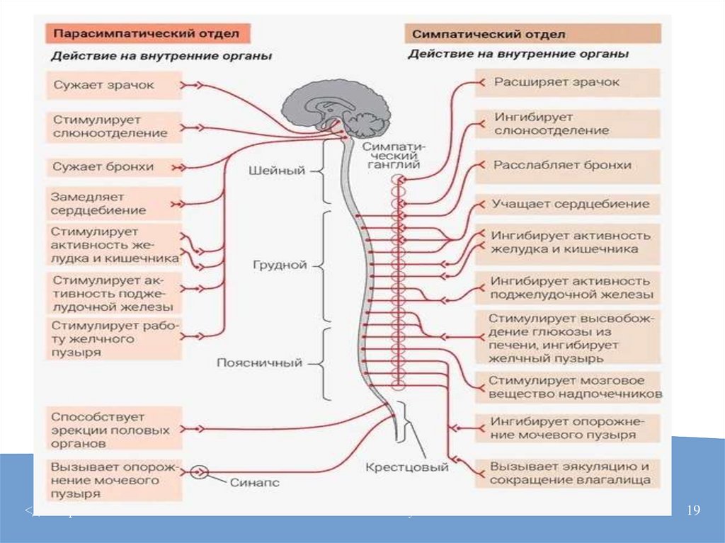 Отличие строения симпатической нервной системы от парасимпатической8.