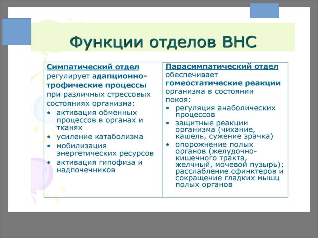 ФУНКЦИИ ВЕГЕТАТИВНОЙ НЕРВНОЙСИСТЕМЫ