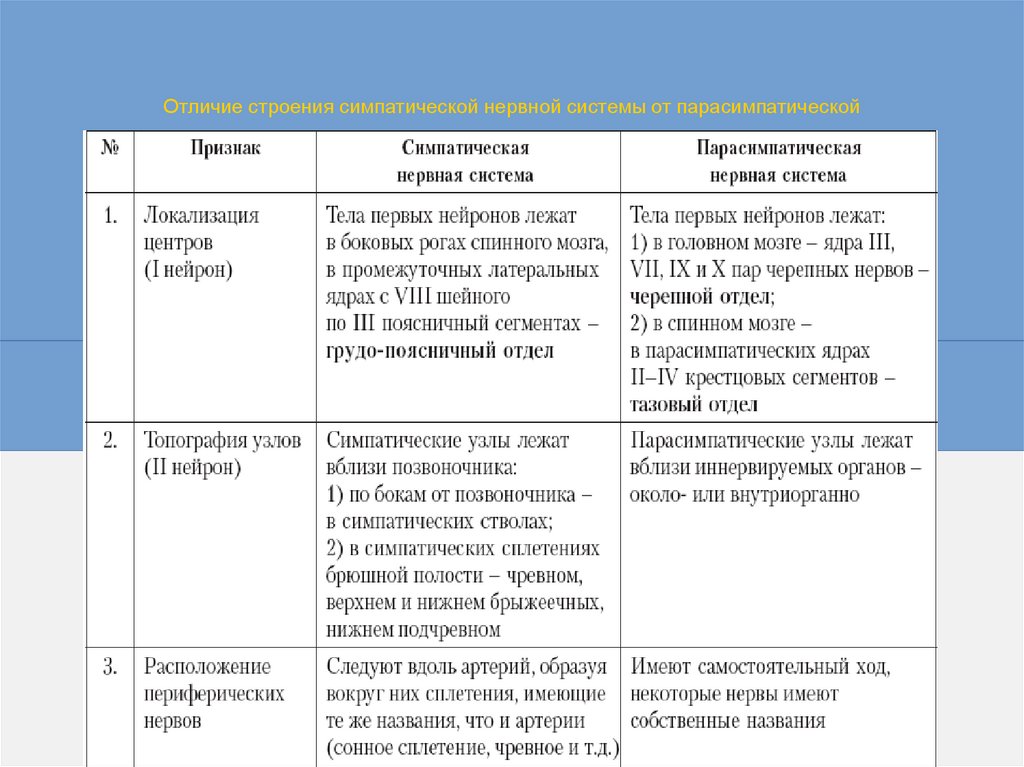 Отличие строения симпатической нервной системы отпарасимпатической