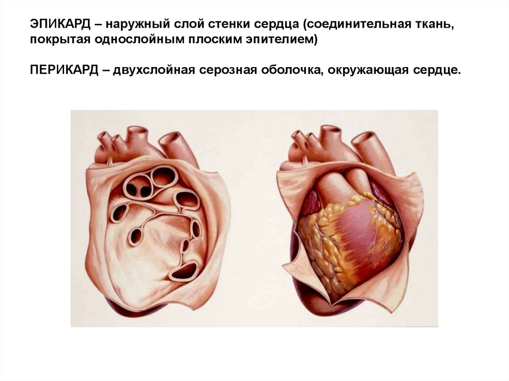 ЭПИКАРД – наружный слой стенки сердца (соединительная ткань,покрытая однослойным плоским эпителием)
